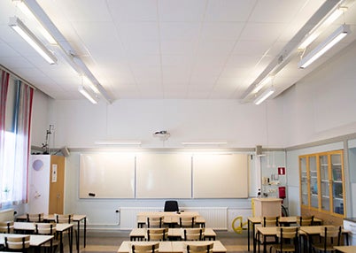 - En avgjørende årsak til at vi valgte Aura Light var at vi ikke trengte å øke antallet armaturer per klasserom. Alle andre konkurrenter foreslo ni armaturer per klasserom, men med Aura Light holdt det med seks i et standard klasserom. Selv om vi har færre armaturer, har vi økt lysnivået, samtidig som vi har redusert effekten, sier Johan Svensson fra Vallacom.