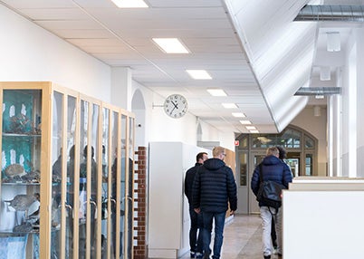 Det samme gjelder fortsatt i dag, med kontinuerlige vedlikeholdsrenoveringer og forbedringer av skolens lokaler. Nå sist har interiøret blitt renovert og oppgradert, og det samme gjelder belysningen. Den gamle, utslitte belysningen skulle byttes ut og oppgraderes til energieffektiv LED for å skape bedre lys og et godt undervisningsmiljø for elever og lærere, men også for å redusere energiforbruket. For tre år siden startet prosjektet med å oppgradere belysningen ved først å installere pendelarmaturen Lezzon og belysningen Znap i to klasserom. Det ble en merkbar forbedring med den nye belysningen, og elevene og lærerne som jobbet der, var svært fornøyde med resultatet. Etter dette ble videre oppgradering satt i gang. Gradvis, i rykk og napp, ble klasseromsbelysningen byttet ut til Lezzon og Znap, i korridorene ble Aura Lunaria Pro LED-panel installert og den populære pendelarmaturen Exzite ble plassert i undervisningsrommene.