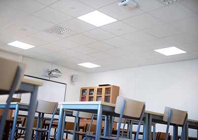 Klasserommene har fått LED-paneler med variabel fargetemperatur og ny tavlebelysning. Å kunne justere lyset etter ulike behov var et av kravene skolen hadde: