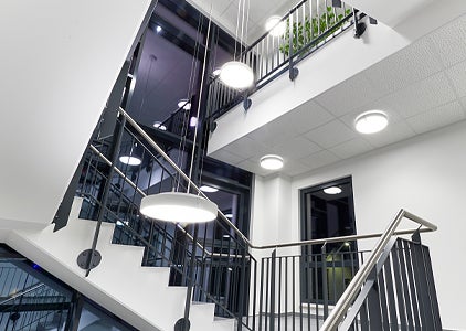 - Korridorer og gangveier som tidligere hadde lysrørsarmaturer (4×18W) ble oppgradert med 20 Lanternin LED-paneler (31W) – for jevn og behagelig belysning.