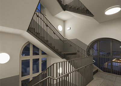 Kvill ble også brukt i korridorer og sosiale områder i den administrative fløyen. Med smart styring via ActiveAhead sikres energieffektiv bruk. Installasjonen er enkel, ingen nye kabler er nødvendig takket være at armaturene kommuniserer trådløst.
