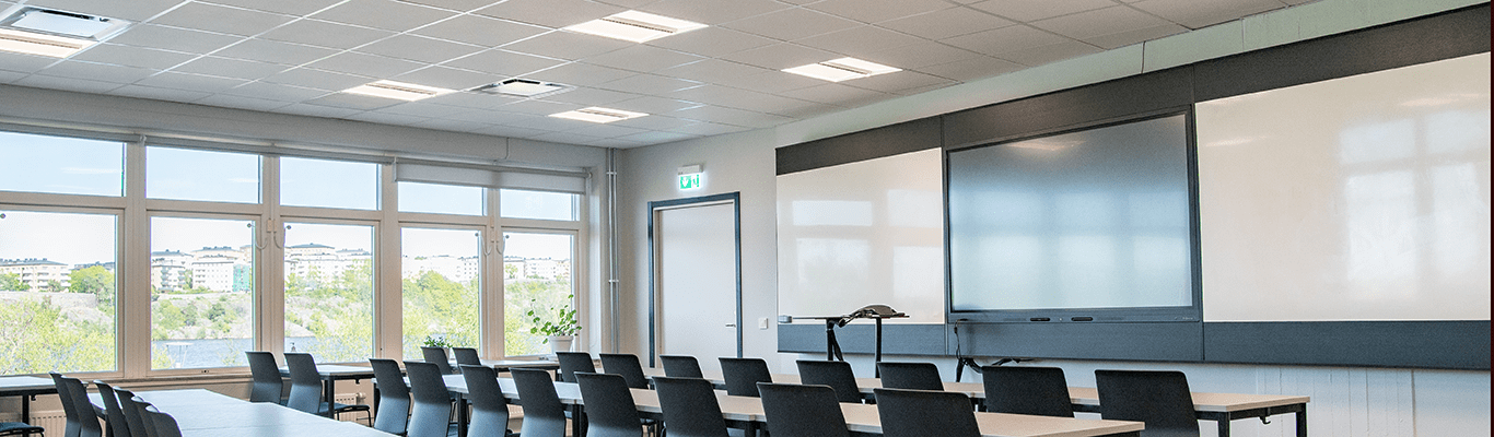 Amerikanska gymnasiet, en videregående skole i Stockholm, ligger vakkert til ved Mälarens strand i nyrenoverte lokaler. Skolen har satset på å skape trivelige miljøer for elevene som stimulerer til læring og konsentrasjon. Her har oppgradering til moderne belysning spilt en viktig rolle. Med Cellini LED-panel har den videregående skolen fått en energismart og optimalisert belysningsløsning som er godt egnet for studier.