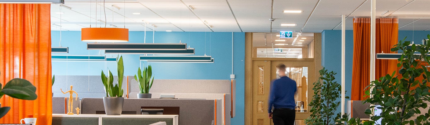 At Tekniska verken in Linköping you will find Aura Light's lighting installed in most of the building. Usually you’ll find the classic white luminaires, but when you come to the department where Bixias has its headquarters, you will instead be met by a colorful alternative.
