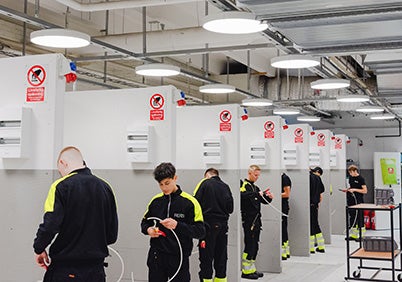 Verkstaden som ligger inhyst i den stora gymnasiebyggnaden rymmer varsin avdelning för de blivande elektrikerna och VVS-montörerna. Lokalen hade tidigare en relativt omodern belysningslösning med lysrörsarmaturer, men för att matcha skolans vision om förstklassig utbildning skulle även skolmiljön uppgraderas med bland annat en helt ny uppsättning armaturer.